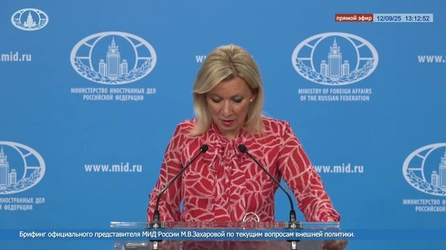 Мария Захарова о замороженных российских активах около €200 млрд, 12 сентября 2025 года