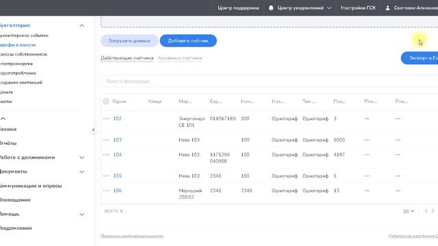 Экспорт счетчиков по электропотреблению в формате Excel