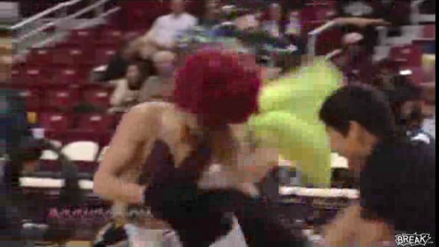 Бой на подушках во время баскетбольного матча