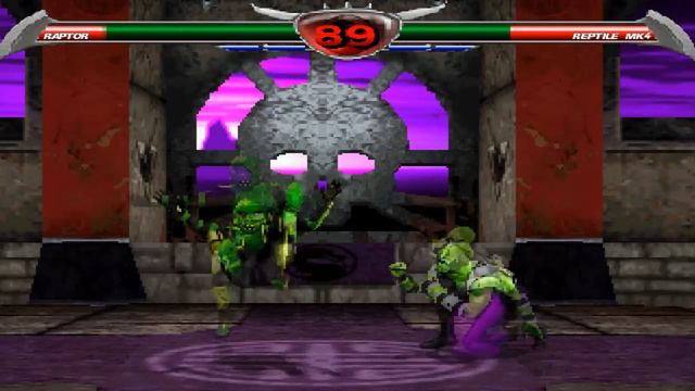 My 23rd MKP playthrough and 16th one in Mortal Kombat Chaotic. This time I am playing as Dark Kung Lao's, Ahriman's, Kay Second's & hasoMK's Raptor. He is a cyborg, who was the same attacks Reptile has, but this one has also acid uppercut and a shield. That means he may be called also as "Cyborg Reptile". Also in this MKP game he has Godzilla's voice. It fits a reptilic character a bit.