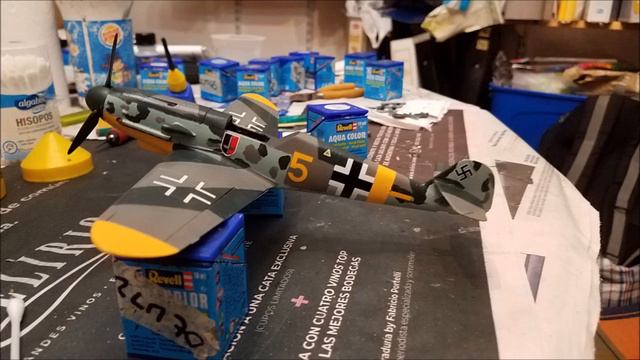 This kit was Hasegawa's Bf 109G-2 "Finnish Air Force" boxing, which didn´t come without the clear and resin parts provided by Hasegawa to make a proper G-2. To remedy that, I used the parts provided by Eduard on their Bf 109G-14 and glued them to the Hasegawa kit. The wheels fitted OK, but the clear parts are narrower than the cockpit sill, plus they're a bit taller than the sorrounding fuselage. Crosses came from an Aeromaster sheet for foreign 109Gs, and the other insignia came from an Eduard Bf 109G-2 "Profipack" decal sheet. Regarding ease of assembly, I'd say the Eduard 1:48 Bf 109G is the easier of the two. Songs used: "Me 109 lied", "Flieger sind Sieger." Subscribe if you'd like to see more models!