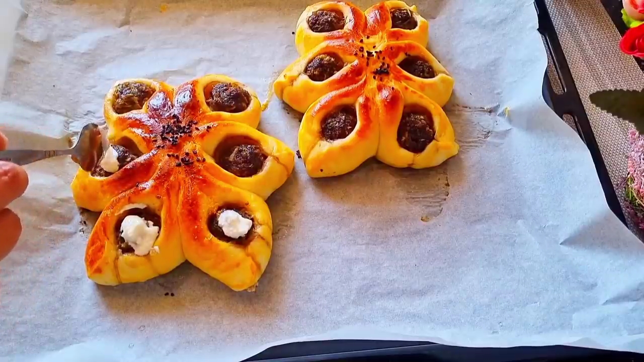 дорогие друзья сегодня готовим вкусная булочка с мясом. ингредиенты мука 200-220гр теплая вода 100мл сахар 1 ст.л. дрожжи 0.5 ч.л. сметана 50гр яйцо 1 шт соль 1 ч.л. начинка говяжий фарш 200гр лук 1 шт соль кориандр кумин перец сметана для смазки #булочкикчаю #булочкивдуховке #мясныебулочки