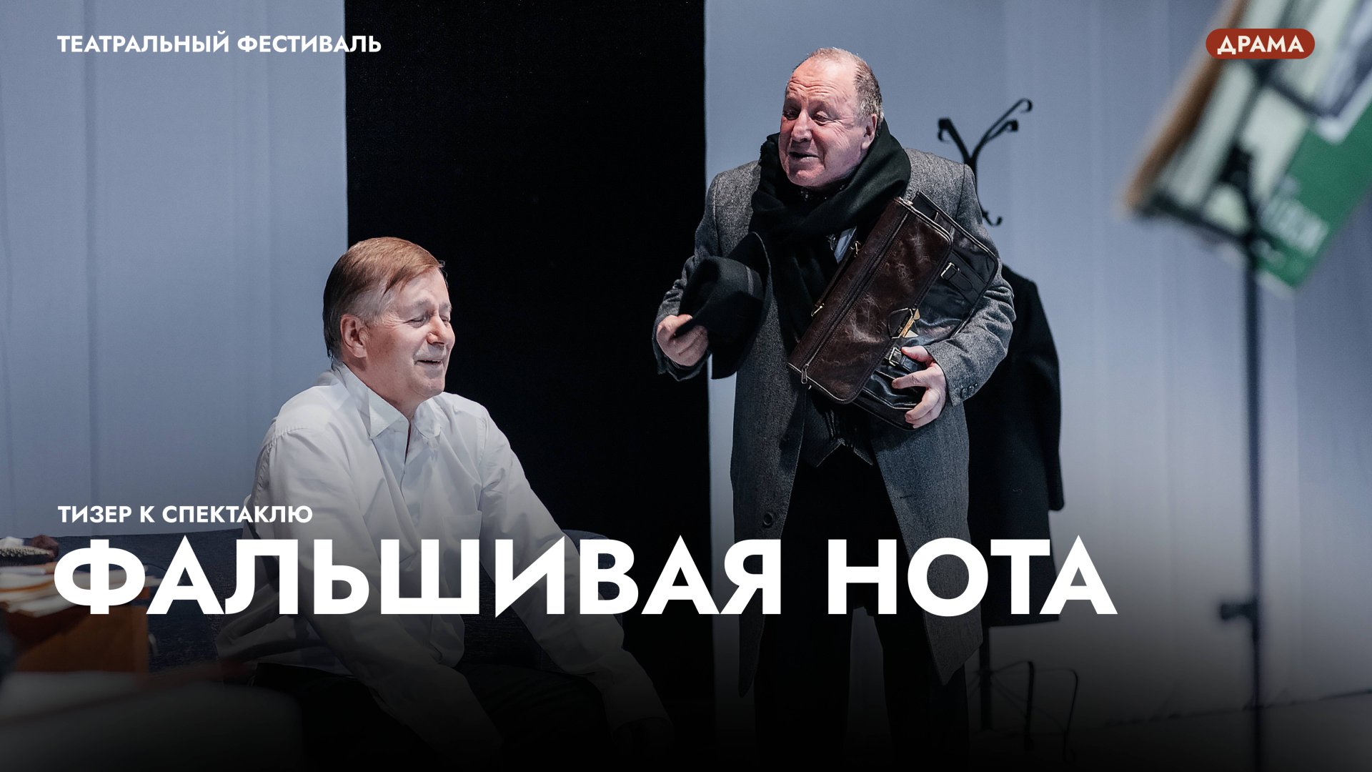 Фальшивая нота - это спектакль, который с первой минуты затянет Вас в происходящее на сцене. Психологическая драма с элементами детектива, которая несет в себе неразрешимые вопросы морали, личного выбора и нравственной ответственности человека за свои поступки. С участием невероятных актеров: Владимира Стеклова и Игоря Ливанова