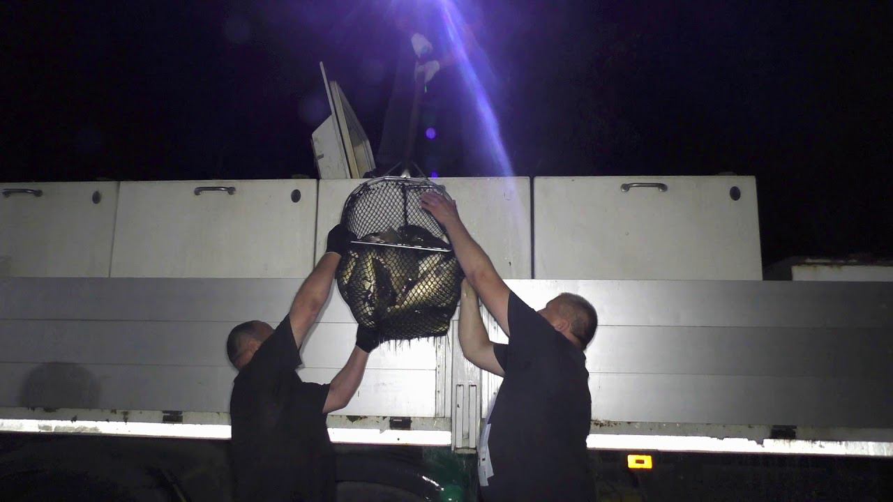 Ночное зарыбление карпом в Рыбацкой Деревне в Юрлово.