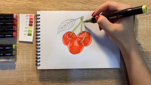 Как нарисовать вишню карандашом и скетч маркерами | Рисунок для детей, поэтапно и легко