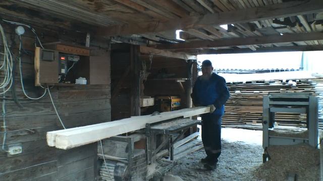 Пилю брус сечением 10 см. на 3-х киловатной самодельной циркулярке . В реальном времени.