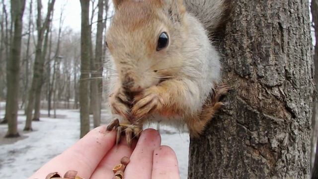 Кормлю знакомую белку