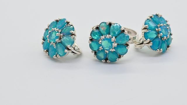 Кольцо и Серьги С925 с опалом, размер 18, 10,6г Арт: с211052-18