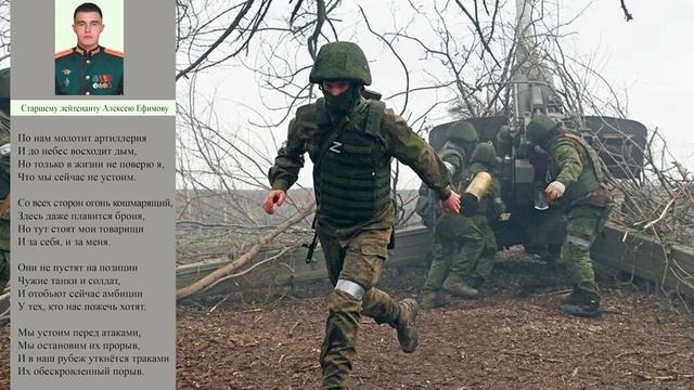 #ПОЭЗИЯСВО Украинские националисты, стремясь вернуть утраченные в ходе боев территории, с нескольких сторон при поддержке танков и крупнокалиберных орудий атаковали позиции подразделений ВС РФ. Старший лейтенант Алексей Ефимов оперативно выдвинулся на передовой рубеж, где лично принял управление боем и организовал работу артиллерии по подавлению огневых точек противника. Более 15 часов военнослужащие под командованием российского офицера сдерживали атаки националистов. По итогам боя боевики потеряли более 30 пехотинцев, а также свыше пяти единиц бронетехники и артиллерийских орудий. Благодаря командирскому мастерству, профессионализму и боевому опыту старшего лейтенанта Ефимова российским войскам удалось остановить наступление противника на стратегически важном направлении. Автор стихотворения: начальник Военно-художественной студии писателей Центрального Дома Российской Армии имени М.В.Фрунзе, заслуженный работник культуры Российской Федерации Владимир Силкин. Читает стихотворение: артистка Центрального Дома Российской Армии, заслуженная артистка Российской Федерации Наталья Пярн. Подписывайтесь на телеграмм-канал https://t.me/cdra_ru и на наш RUTUBE-канал https://rutube.ru/channel/25861207/