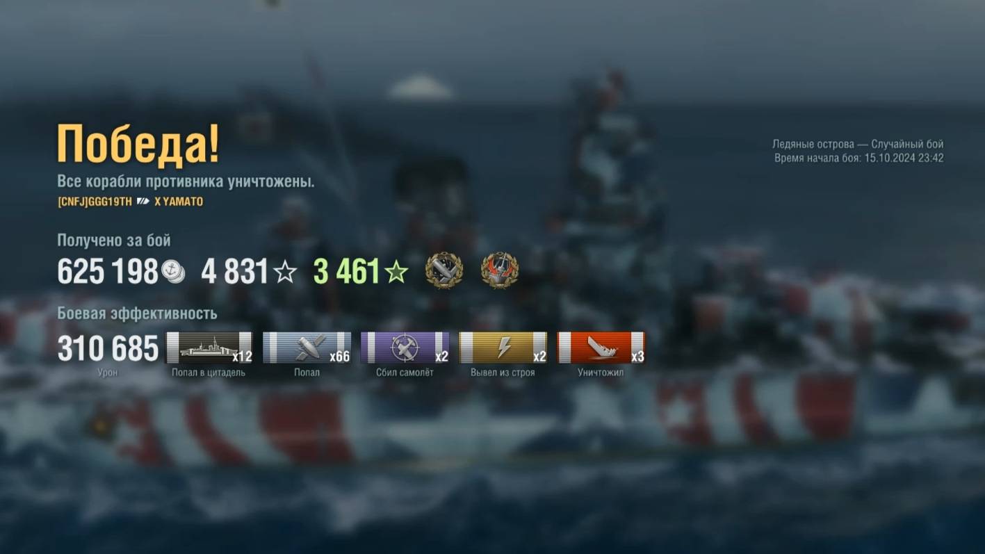 Линкор Yamato: +310к урона на карте Ледяные острова - World of Warships