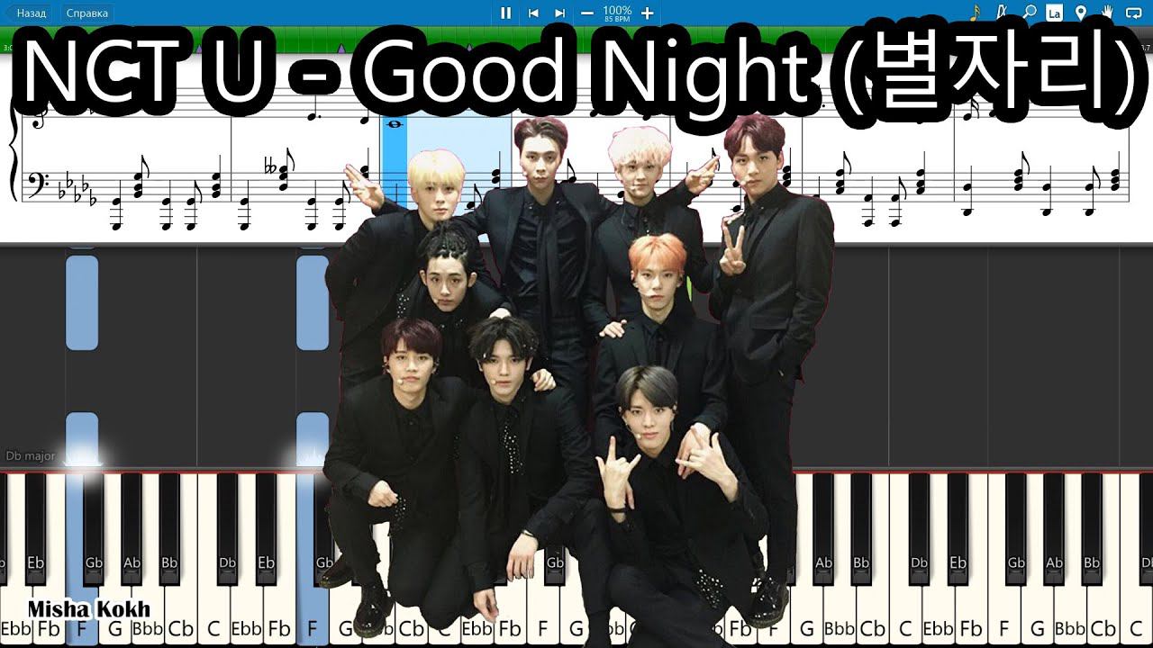 How To Play NCT U - Good Night (별자리) [Piano Tutorial | Sheets | MIDI] Synthesia MIDI: https://www.dropbox.com/s/zqlqbnyimytn3j1/NCT%20U%20-%20Good%20Night%20%28%EB%B3%84%EC%9E%90%EB%A6%AC%29.mid?dl=0 Приобрести архив с MIDI-файлами можно по ссылке / You can purchase the archive with MIDI-files at the link: https://www.digiseller.market/asp2/pay_wm.asp?id_d=2463137&lang=ru-RU
