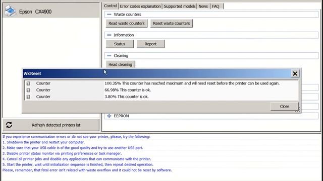Reset Epson CX4900 Waste Ink Pad Counter