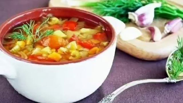 Суп из сельдерея Ингредиенты: 400 гр. стеблей сельдерея, 6 средних луковиц, 500 гр. белокочанной капусты, 3 свежих или консервированных помидора, 2 стручка зеленого сладкого перца, черный молотый перец, соль – по вкусу, но не много. Способ приготовления. Овощи вымыть, обсушить, очистить, мелко нарезать. Залить 3 литра воды, посолить и поперчить по вкусу. Поставить посуду на сильный огонь, довести суп до кипения и кипятить в течение 10 минут. Затем убавить огонь и варить суп, пока все овощи не станут мягкими.