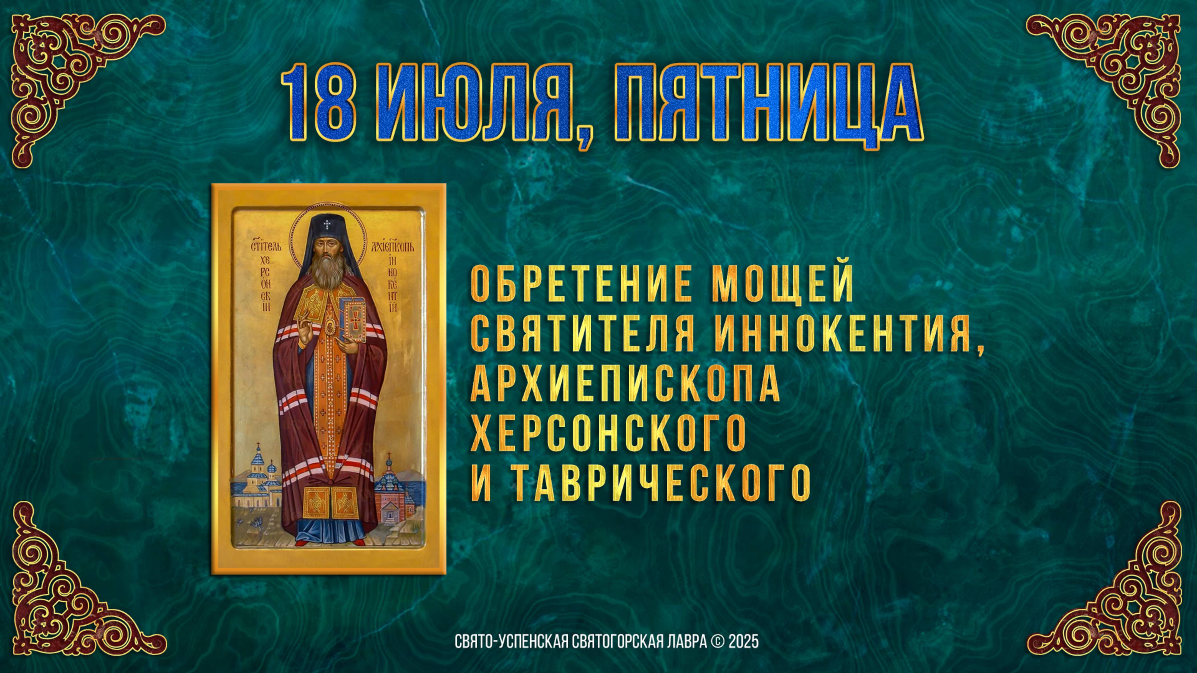 Обре́тение мощей святителя Иннокентия, архиепископа Херсонского и Таврического. 18.07.2025 г.