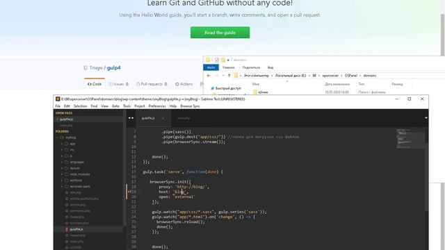 Gulp(browsersync) + Wordpress(Open Server) настройка среды