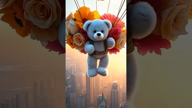 🧸🎈Небесная баллада медвежонка: Полет на воздушном шаре над городом | AI-музыка и анимация.☁️🎵