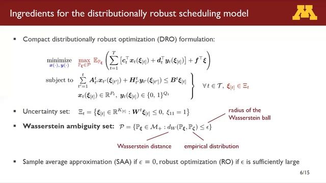 Abstract: In chemical manufacturing processes, equipment degradation can have a significant impact on process performance or cause unit failures that result in considerable downtime. Hence, maintenance planning is an important consideration, and there has been increased efforts in scheduling production and maintenance operations jointly. In this context, one major challenge is the inherent uncertainty in predictive equipment health models. In particular, the probability distribution associated with the stochasticity in such models is often difficult to estimate and hence not known exactly. In this work, we apply a distributionally robust optimization (DRO) approach to address this problem. Specifically, the proposed formulation optimizes the worst-case expected outcome with respect to a Wasserstein ambiguity set, and we apply a decision rule approach that allows multistage mixed-integer recourse. Computational experiments, including a real-world industrial case study, are conducted, where the results demonstrate the significant benefits from binary recourse and DRO in terms of solution quality. Publication available at: https://doi.org/10.1002/aic.17329 ------------------------------------------------------------------------------------------------------------------------ To find out more about our research, visit: https://qizh.cems.umn.edu