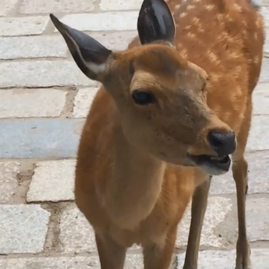 Ребятам попался оленёнок в японском городе Нара.