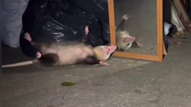 Опоссум случайно увидел своё отражение в зеркале, словил инсульт жёпы и инсценировал смерть