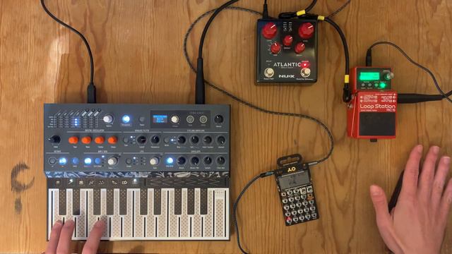 This is a diary. And today I wanted to use everything I have (for now). #13 Ether is fun. It is lots of fun, but it can be kind of challenging to incorporate it into a jam. After a few tries though, I found out that in a certain position behind the looper, it was almost tonal. It was a tone. Or it felt like Ether was producing a tone. A drone. Then it was all about trying to match those tones. Trying to match those droning and fading notes. And then sampling live the Ether through the PO33 so I could make kind of a silly beat. That's something I love about the PO33. No matter the sound, you can sample it into PO's rhythmic patterns and it can become a beat. Well, more or less. Patience! That's what I feel I always lack when playing. Patience!