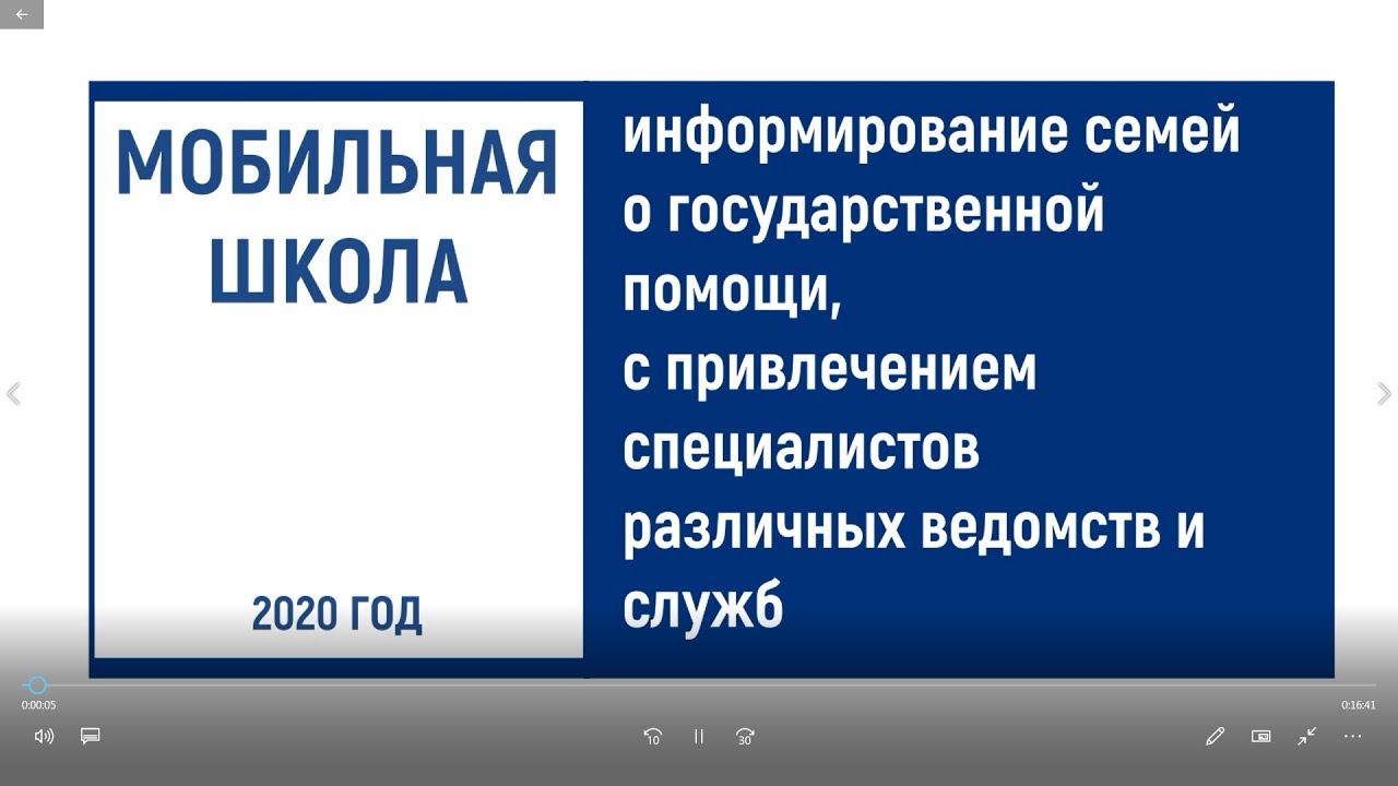 Информирование семей о государственной помощи, с привлечением специалистов различных ведомств и служб. В Приморском крае активно реализуется Комплекс мер по развитию эффективных социальных практик, направленных на сокращение бедности семей с детьми и улучшение условий жизнедеятельности детей в таких семьях. Одним из мероприятий данного комплекса мер является организация и проведение родительских собраний для родителей (законных представителей) несовершеннолетних "Мобильная школа"