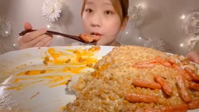 Мукбанг рис и колбаски Еда на камеру