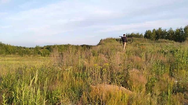 Поднимаем велосипеды на песчанную дюну, что-бы съехать с горки