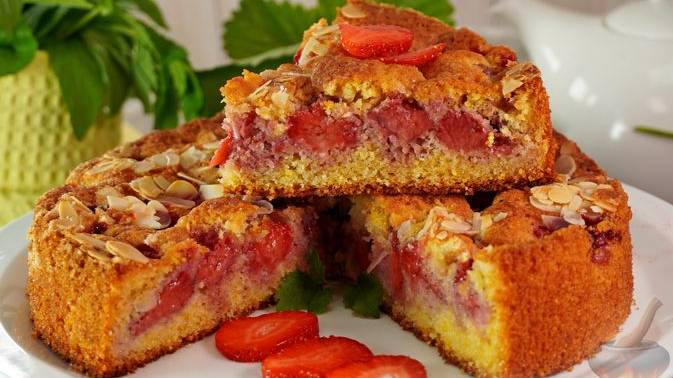 Выпечка, которая не успеет остыть. КУКУРУЗНЫЙ ПИРОГ С КЛУБНИКОЙ