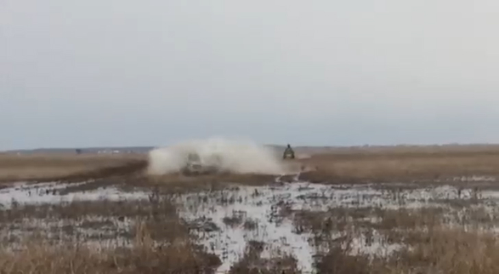 Квадроциклы и нивы выехали помесить грязь , покататься по затопленным полям и поесть шашлыка.