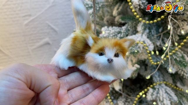 331090 Украшение елочное Котенок реалистичный бело-рыжий 7см