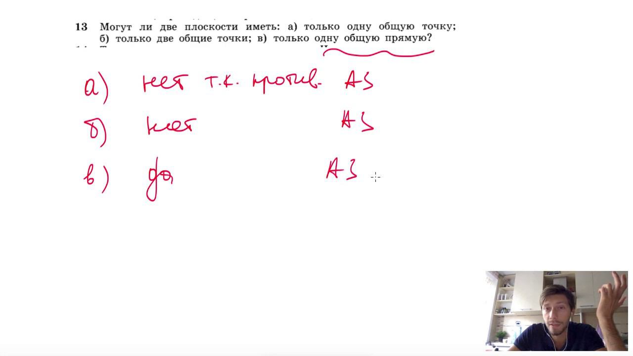 №13. Могут ли две плоскости иметь: а) только одну общую точку; б) только две общие точки; в) только одну общую прямую? Мой второй канал для подготовки к ЕГЭ и ОГЭ - https://www.youtube.com/ЕвгенийСумин Инстаграм - https://www.instagram.com/EGE_OGE.math Личный инстаграм - https://www.instagram.com/ee_sumin VK - https://vk.com/evgeniysumin FB - https://www.facebook.com/EvgeniySumin