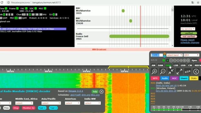 |DRM DX| KiwiSDR; TWR; 621 kHz; India Radio MW - Bengaluru; Bengaluru (IN)