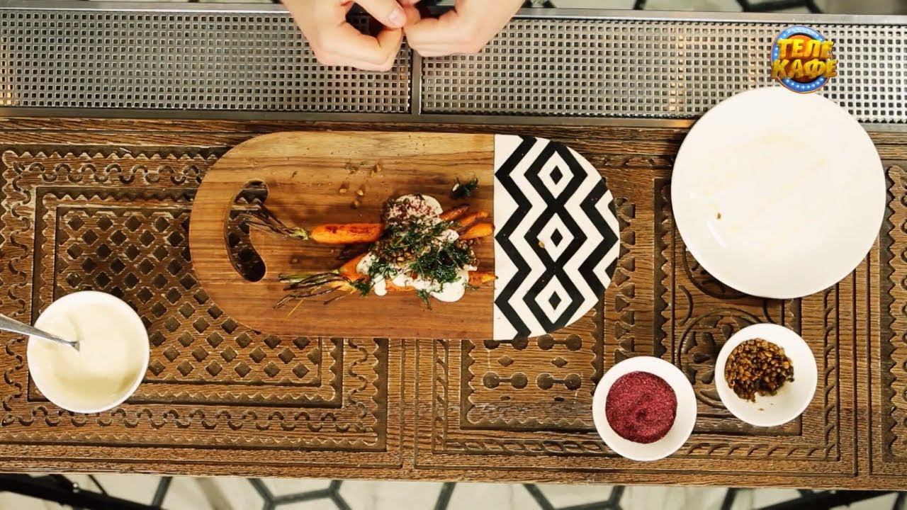 Овощные блюда: Запечённая морковь с тахини и жареной ботвой