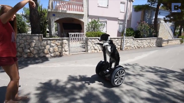 Этот песик умеет вытворять разные вещи - в том числе и кататься на сигвее.