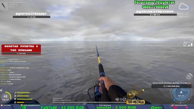 Поддержка донатом https://new.donatepay.ru/@1032463 Альтернативный донат https://www.donationalerts.com/r/kalyamba11 5536913964533059 карта Тинькоф Если стрим лагает,смотри стрим на трово https://trovo.live/s/Kalyamba_na_Ribalke Мой ВК - https://vk.com/kalyantv НИК в игре kalyan11 НАШ ДИСКОРД СЕРВЕР https://discord.gg/3ZeEDGs5h6 Заказ водоема на 1 час - 500р ( весь стрим 2500р ) Модерка на канале 1300р ( каждая следующая на 100р больше) Озвучка доната на 40р,50р,100р,200р,300р,500р,1000р ✅Призы в рулетке "ЗОЛОТАЯ" ✔ ЗОЛОТО ✔ ПРЕМ ✔ КАТУШКИ ЮБИЛЕЙНАЯ БОРЕЛИКА, ВЕНГИ, ТАЙГА, СИЛЬВЕР 80, И другие ✔ ПАЛКИ ПИЛКЕРНАЯ, ДОНКА МОРСКИЕ, ✔ РОД ПОД, СТУЛЬЯ ✅Призы в рулетке СТАНДАРТ : ✔ катушкИ ЮБИЛЕЙНАЯ БОРЕЛИКА, ВЕНГИ, ТАЙГА, СИЛЬВЕР 80, И другие ✔ катушки 60 для медного ( ЭВИИ, НАТОРЫ, ГОЛДА, и тд) ✔ ПИЛКЕРНОЕ УДИЛИЩЕ КОРОЛЕВА ОКЕАНА ✔ Морское Донное удилище ✔ прем ( 3, 7, 30 дней) ✔ золото ( 1, 3, 5, 10, 20 ,50) ✔ билет на море ( 1, 3, 5 дней) ✔ голд наживка и др. ✅Призы в рулетке "СТАРТОВАЯ" ✔ катушка "silver80" ✔ катушка "БЕЛЫЙ КАЛИБР" ✔ катушка "Черный калибр" ✔ катушка "Протон" ✔ катушка "Нарга 6000" ✔ Набор Фидерист и спинингист ✔ Карповик Фортуна ✔ фидерные удилища ✔ прем, золото, алкашка, наживки и тд P.s Рулетка это не казино, а награда за поддержку стримера. Вечный ТОП ПОДДЕРЖКИ (11.05.2024) 1. Dimon_pokemonchik 119 784 2. Interceptor 75 508 3. Skreb79 71 261 4. une personne 68 619 5. Нарвал77 31 550