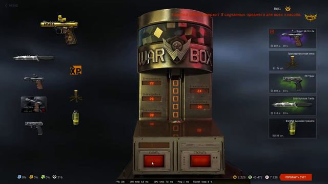 Крутим коробки удачи в игре Варфейс.Если посчитать в общем за 1 месяц мне за 24000(включая новогодний кэш) выпали керамбит и пистолет рюгер..Вот вам и удача в варфейс.В эту игру я слил довольно много кредитов)На браво довольно мощный склад.Если вам интересно посмотреть мой склад на всех серверах-пишите в комментариях и ставьте лайк.