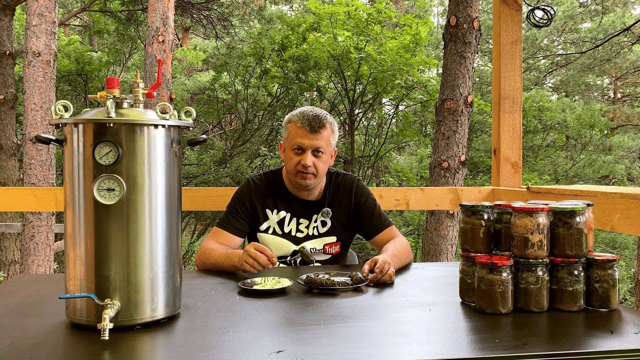 Один в лесной избушке. СДЕЛАЛИ ДОРОГУ И ГОТОВЛЮ ДОЛМУ В АВТОКЛАВЕ.