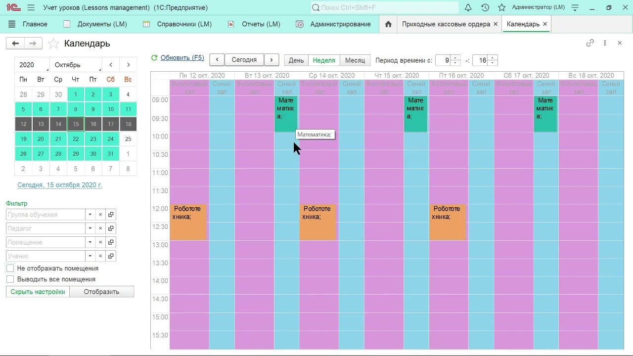 Учет занятий и уроков в 1С: 8.3. Календарь
