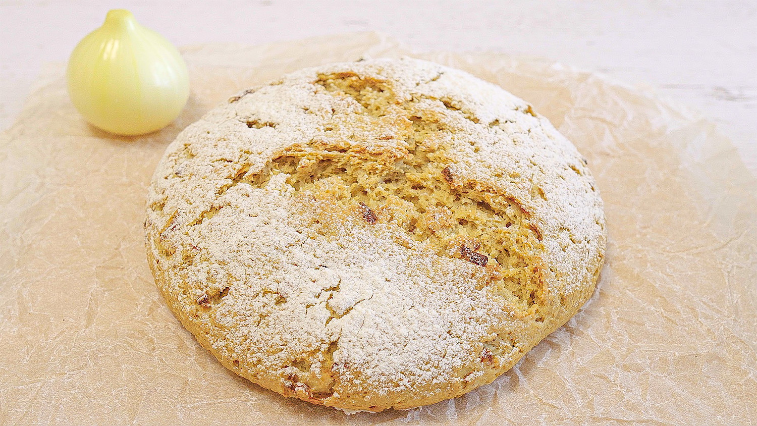 Тёплое вода ? (200 мл). Сахар (1/2 ст л). Сухие дрожжи (3 г). Мука (150 г). Соль ? (1/2 ч л). Накройте и оставьте на 10 минут. Лук ? (1 шт). Оливковое масло (30 мл). Овсянка (150 г). Измельчить в муку. Замесите тесто. Смазать растительным маслом, накрыть и оставить на 30 минут. Накройте и оставьте на 10 минут. Посыпать мукой. 200°C (390°F) выпекать около 15 минут (накрыть фольгой), затем снять фольгу и продолжать выпекать в течение 15-20 минут.