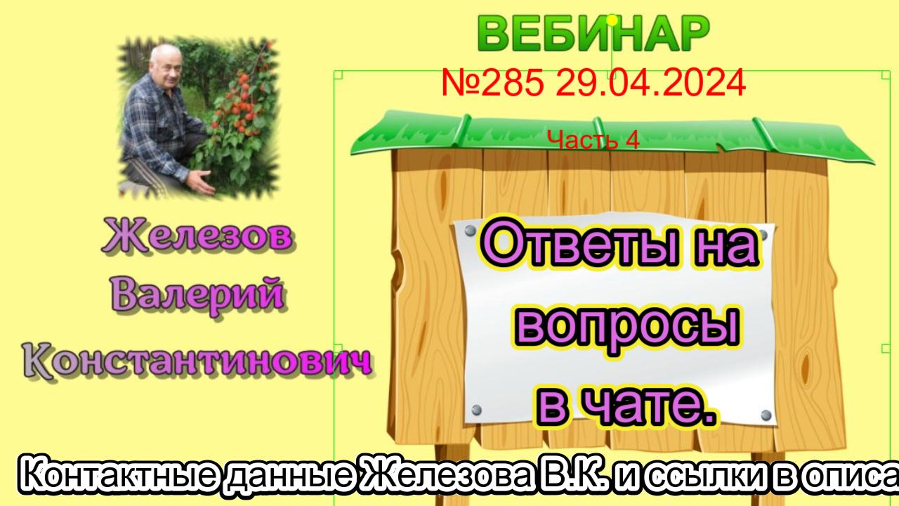 Комментарии и вопросы можно оставлять в гостевой комнате Валерия Константиновича - http://sadsib.narod.ru/gb/ Телефон Железова В.К.: +7 960 776 86 72 Сайт Железова В.К.: https://sad-sib.ru/ Эл. Почта: jelezovsadsib@mail.ru - Группа в ОК - https://ok.ru/jelezovsadsib - Группа в ВК - https://vk.com/jelezovsad - https://zen.yandex.ru/id/5a4727b2168a915b10779daf Чат в WhatsApp: https://chat.whatsapp.com/LLFENhq7J7h7YICU8uPRkl Чат в Телеграм: https://t.me/+IXSEa_e9wchkZjFi Садоводство по Железову на Youtube: https://www.youtube.com/channel/UCJqMclLm9z4lapERsEM6NPA Садоводство по Железову на Rutub: https://rutube.ru/channel/23786837/ Долматов Валерий Александрович телефон: +7 919 332 12 19 (лак мастика) Уральские саженцы от Галины Лотенковой: https://lotenkov.info/#rec537216072 Канал Лотенкова О.Ю.-Долматов В.А.-Железов В.К.: https://www.youtube.com/channel/UCZ1mqSFbgXFQE585FSiwxBQ