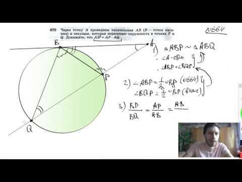 №670. Через точку А проведены касательные АВ (В — точка касания) и секущая, которая пересекает окружность в точках Р и Q. Докажите, что AB2 = AP⋅AQ. Поддержать канал рублём - 5469400944002125 (Сбербанк) Мой второй канал для подготовки к ЕГЭ и ОГЭ - https://www.youtube.com/ЕвгенийСумин Инстаграм - https://www.instagram.com/EGE_OGE.math Личный инстаграм - https://www.instagram.com/ee_sumin VK - https://vk.com/evgeniysumin FB - https://www.facebook.com/EvgeniySumin