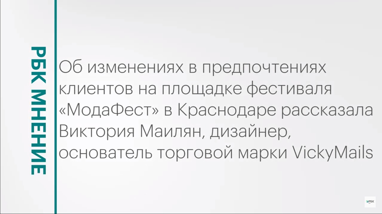Об изменениях в предпочтениях клиентов на площадке фестиваля «МодаФест» в Краснодаре рассказала Виктория Маилян, дизайнер, основатель торговой марки VickyMails. Подписывайтесь на нас в социальных сетях: ВКонтакте: https://vk.com/rbcyug Telegram: https://t.me/rbc_krasnodar, https://t.me/rbcrostov, https://t.me/rbc_kavkaz Подпишитесь на канал РБК Юг, чтобы смотреть новые выпуски первыми!