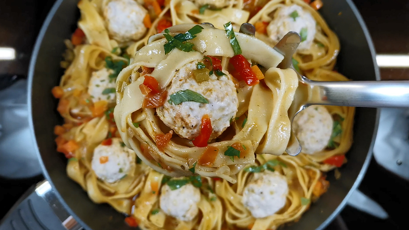 Ну очень вкусное блюдо на одной сковороде. Отличный обед для всей семьи. Если у вас есть фарш, добавьте к нему немного овощей и макароны гнёзда. Макароны без варки получаются намного вкуснее. Приготовить макароны с фаршем на сковороде проще и быстрее, чем всё делать по отдельности. Семейный обед или ужин просто и вкусно, без особых хлопот и без лишней грязной посуды. Ингредиенты: Макароны гнёзда - 350 гр (12 шт.) Фарш - 500 гр (на 12 шариков) Репчатый лук - 150 гр + 150 гр Помидоры - 350 гр Сельдерей - 150 гр Болгарский перец - 200 гр Морковь - 150 гр Вода - 600 мл Соль и перец - по вкусу Карри и ароматные травы - по вкусу Растительное масло для жарки ***************************************************************************** Одноклассники https://ok.ru/group/60739114565686 Яндекс Дзен https://zen.yandex.ru/rozovybaklazan Facebook https://www.facebook.com/groups/30739... Яндекс Эфир https://yandex.ru/efir/?stream_active... Ютуб https://www.youtube.com/c/РозовыйБаклажан/featured ***************************************************************************** Музыкальная композиция: My Achy Heart Автор: Audio Hertz Ссылка на исполнителя: https://www.youtube.com/channel/UCQwack29qZerCwaELoR3bLg Музыка, продвигаемая музыкальной библиотекой Happy Soul https://happysoulmusic.com https://happysoulmusic.com/audio/my_achy_heart_-_audio_hertz-mp3/ #фарш #макароны #обед #овощи #ужин #простойрецепт #простыерецепты #ужиндлявсейсемьи #обеддлявсейсемьи #макароныбезварки #макаронынасковороде #макароныгнезда #макаронысфаршем #фаршсмакаронами #чтоприготовитьнаобед