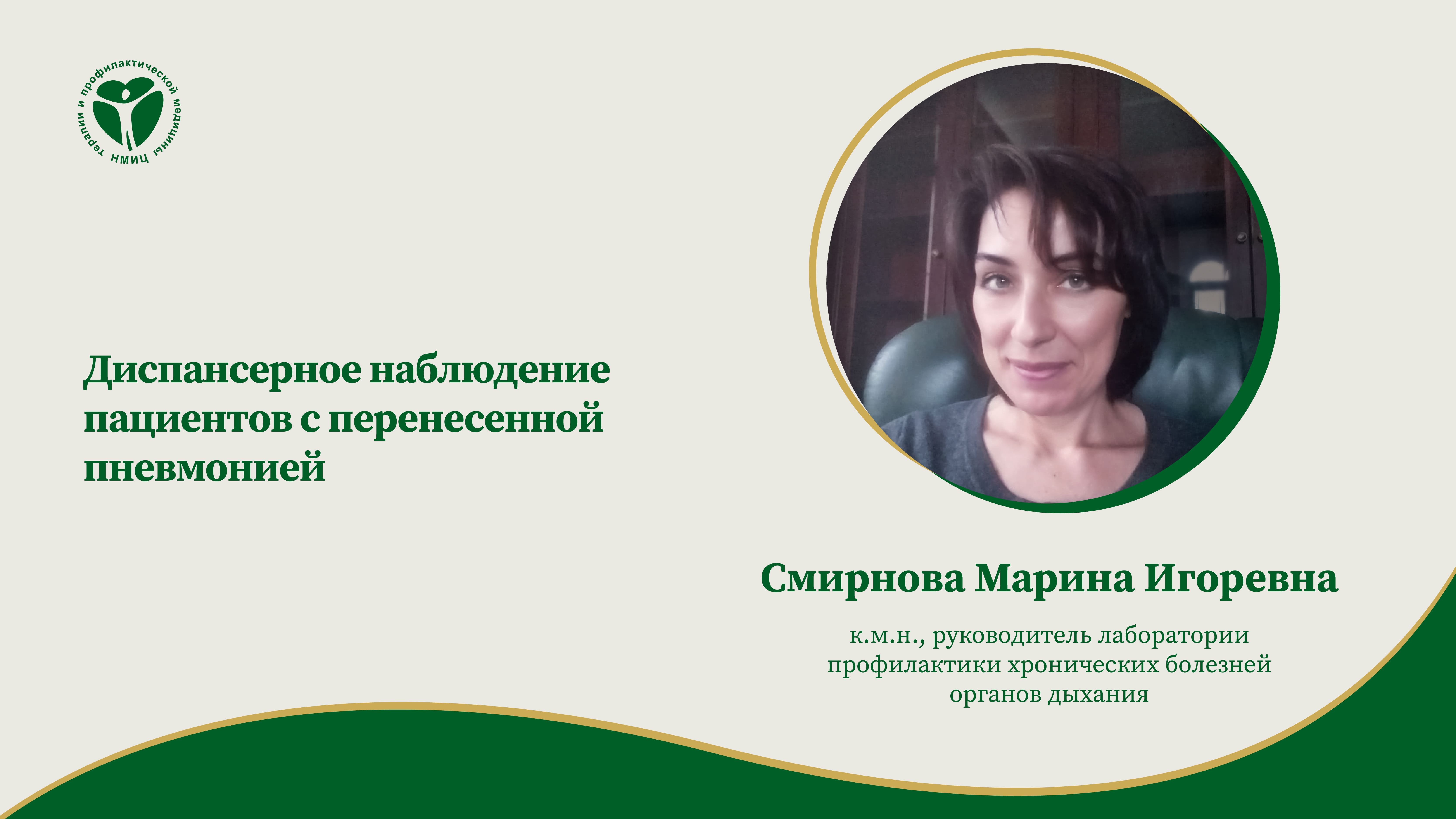 «Диспансерное наблюдение пациентов с перенесенной пневмонией», семинар от 24.10.2023. Лектор: Смирнова Марина Игоревна — к.м.н., руководитель лаборатории профилактики хронических болезней органов дыхания ФГБУ «НМИЦ ТПМ» Минздрава России