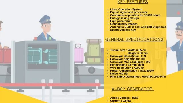 @X RAY INDIA www.xrayindia.net an ecommerce platform of medical and industrial xray equipments , where you can grab best quality xray machines at best prices with exciting offers and services . Xray India is introducing X Ray Baggage Scanner 6550 80 kV -ABU XIS 2010 specifically customized design for security and surveillance applications at Hotels, airports, Railway stations, Corporate offices, Stadium, Currier services, Government department, Temple where security scan is top priority. INCLUDES 1.Outfeed Table 2.Display Monitor 3.One Year Warranty 4.X Ray Baggage Inspection System 5.Onsite at Client-Installation and Training (1day) KEY FEATURES 1.Linux Operation System 2.Digital signal and processor 3.Continuous operation for 10000 hours 4.Energy saving design 5.High penetration 6.Good quality images 7.Automatic Built in Test and Self Diagnosis 8.Secure Access Key