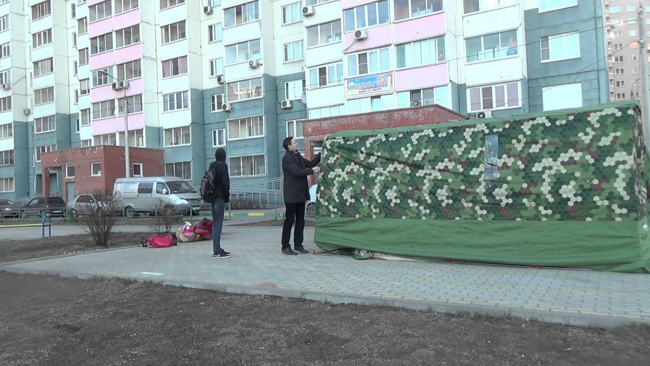 Заказать Мобиба МБ-442 М2 здесь: http://mobiban.ru/mb-442-m2.php Демонстрация сборки мобильной бани и отапливаемой палатки специального назначения Мобиба МБ-442 М2 в камуфлированной расцветке с сотами - "сотовый камуфляж". Сборка каркаса начинается с расположения нижней обвязки. Двухзвенная перегородка разделяет нижнюю часть каркаса на предбанник и парильное помещение, которые для этой модели Мобиба имеют один и тот же объём. Далее два торцевых шпангоута и три средних шпангоута. Потом крепление стрингеров и стяжка каркаса ремнями. Здесь установка тентов начинается с внешнего тента. Это удобно в ветреную погоду. Обычно в видеороликах сборку я начинал с установки внутреннего тента. Внешний тент одевается сверху, как капюшон и крепится к нижней обвязке каркаса. Перед этим необходимо занести внутренний тент. После установки внешнего внутренний тент крепится системой крепёжных элементов к шпангоутам и к нижней обвязке каркаса везде, где это предусмотрено конструкцией. После этого остаётся только установить дверные узлы. При подготовленном разложенном каркасе и тентах чистое время сборки одним человеком составляет около 20 минут.