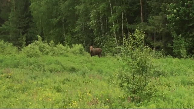 Наш читатель Александр Бутаков, остановившись на дороге в окрестностях Кунгура, заснял на видео лосиху, вышедшую из леса на опушку.