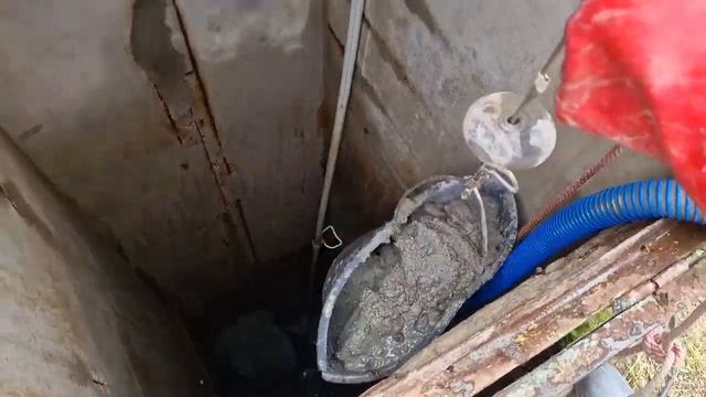 Чистка колодца сделанного из "П" образных плит СНТ Родник в Калининграде тел.40-11-36