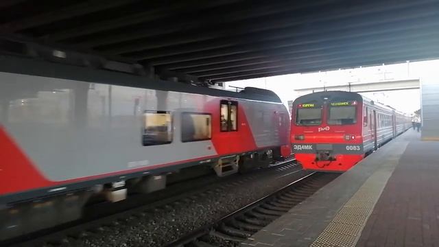 Электропоезд ЭС1П-019 "Ласточка" с скорым приг. поездом №7901 отправляется со ст. Челябинск-Главный