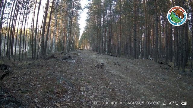 23.04.2025.Волк.Заповедник Большая Кокшага.Один взрослый волк идет по лесной дороге в смешанном ле